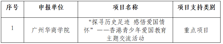 近日,广东省教育厅发布了《关于组织实施2024年港澳台学生国情教育项目的通知》,我校港澳台办申报的《“探寻历史足迹 感悟爱国情怀”——香港青少年爱国教育主题交流活动》获批学生活动类重点项目。