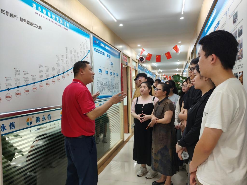 德永信集团人事经理袁春带领会计学院一行参观了德永信集团的办公场所、党建文化长廊以及企业荣誉展示区。通过参观,教师们对德永信集团的企业文化、发展历程、业务范围以及行业地位有了更为直观和深入的了解。德永信集团作为财税服务行业的领军企业,始终秉持创新、专业、高效的理念,为客户提供优质的财税解决方案,其先进的管理理念和强大的专业实力给参观教师留下了深刻印象。