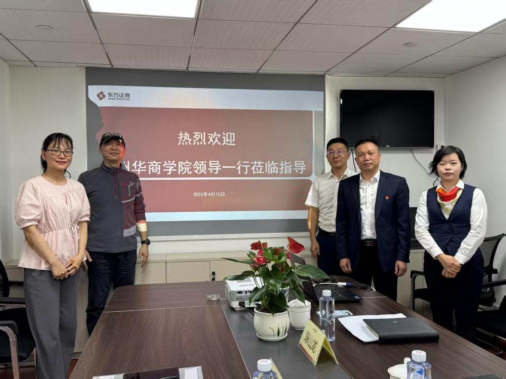 2025年4月15日,数字金融学院院长助理钟坚毅副教授、金融系系主任卢敏副教授前往我校实习基地——东方证券广州宝岗大道证券营业部开展交流研讨。此次交流活动旨在进一步加强校企合作,推动实习基地建设,深化产教融合,探索数智金融人才培养新模式。