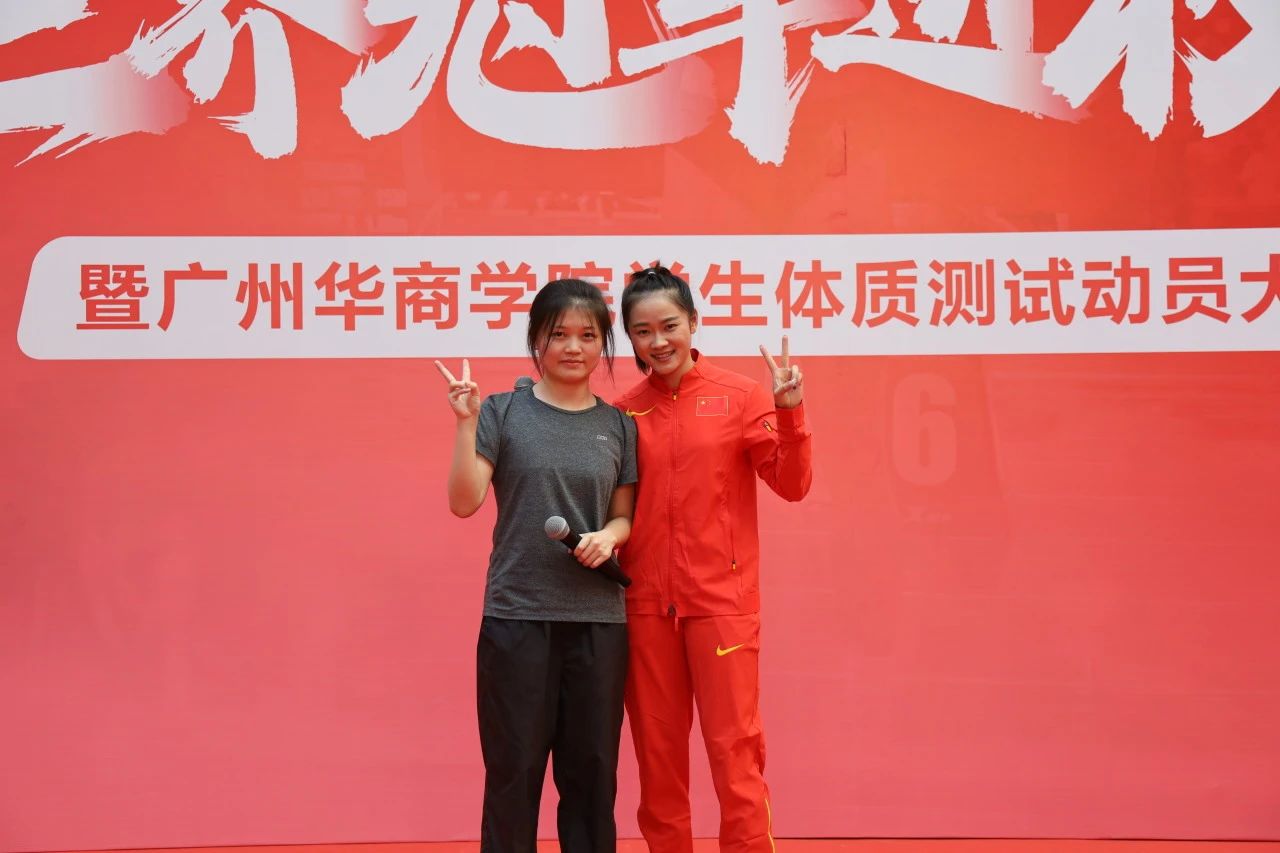 10月29日下午,世界冠军进校园暨williamhill中国官网学生体质测试动员大会以线上+线下的方式在广州校区图书馆举行。世界冠军、中国田径短跑运动员梁小静莅临华商,作为特邀“体育老师”分享其运动生涯与夺冠背后的奋斗历程。世界冠军梁小静,广东省体能协会常务副会长兼秘书长韩春远,增城文旅体中心副主任朱庆伟,广州博润体育科技有限公司、赛事运营副总经理刘义勇,williamhill中国官网党委书记陈玉欢,学校党委委员、副校长许娜,以及各职能部门负责人、二级学院代表出席本次大会,与500余名师生代表共上一堂“体育课”。本次会议由学校副校长许娜主持。