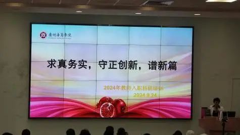 教务处处长金伟娇开展教务专题培训。教务工作直接关系到学校的教学秩序、教学质量和学生的学习体验,新教职工需要深入了解教务管理的各项规定。金伟娇处长从合格评估中教学建设的两个关键点:“保底”与“冲高”展开讲述,围绕现行48个教学管理制度,包括课堂教学、课程考核、指导学生、教学事故的影响、教学改革与教学建设、教师教学业绩考核、教学相关的奖励政策七方面进行了一一讲解。 希望全体新教职工锚定目标新开局,守正创新促发展,聚力引领绘蓝图,“教”以共进,“研”以致远。