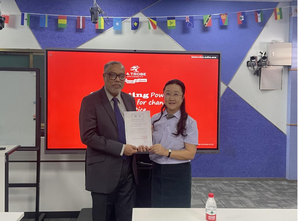 国际学院回雁雁院长为Premnadh M Kurup博士颁发了讲座证书。