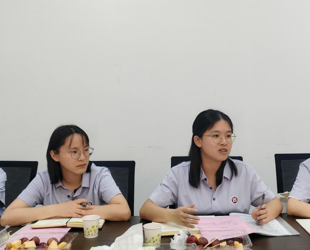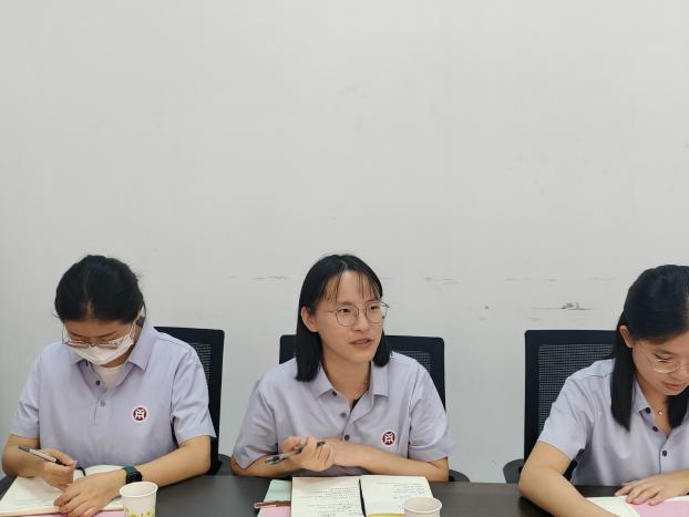 辅导员谢树萍老师汇报文学院学生资助工作开展情况。谢老师详细介绍了文学院关于“三金评选”(奖学金、助学金、励志金)的评选流程、标准以及近年来的资助成效。她表示,本年度的“三金评选”及资助工作开展顺利,同时,学院将继续优化评选机制,秉持“不漏掉任何一个家庭贫困学生”的原则,继续做好各项评选和资助工作,确保工作更加公平、公正、公开。