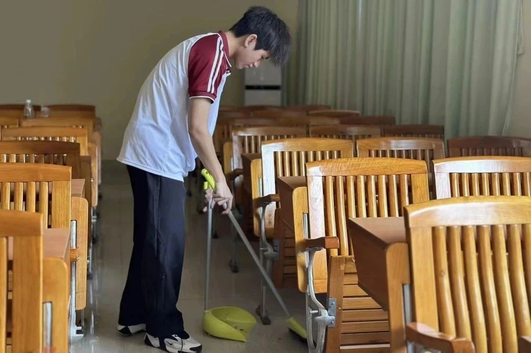青年志愿者携带清扫工具细致地对厚德楼,励志楼、启智楼和校园的公共区域进行全方面的深度清扫,不遗漏任何一个角落。他们热情高涨、耐心细致、相互配合,有条不紊地打扫教学楼的每一层大厅、走廊和楼梯,不放过每一个细节,致力于让踏入教学楼的每一位华商师生都能感受这一份“净”。