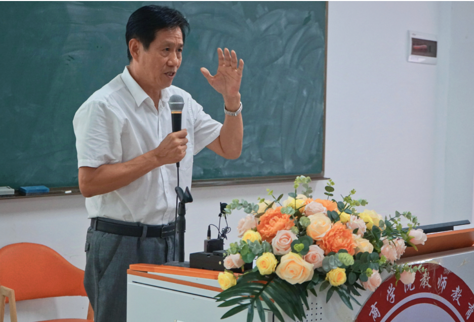 教师教育学院王金道院长在讲话中表示,今年首次将教师节庆祝与新生见面会相结合,意义重大。王院长深情回顾了教师节设立以来的40年变迁,表达了对教师这一职业的自豪与感激之情,并对教师教育学院的师资队伍、教学成果和特色进行了详细介绍。王院长特别强调了教师教育学院对学生严格要求的理念,希望新生们能够在老师们的带领下努力学习,练就一身过硬本领,成长为既有扎实基础知识又能适应社会发展需求的优秀教师。