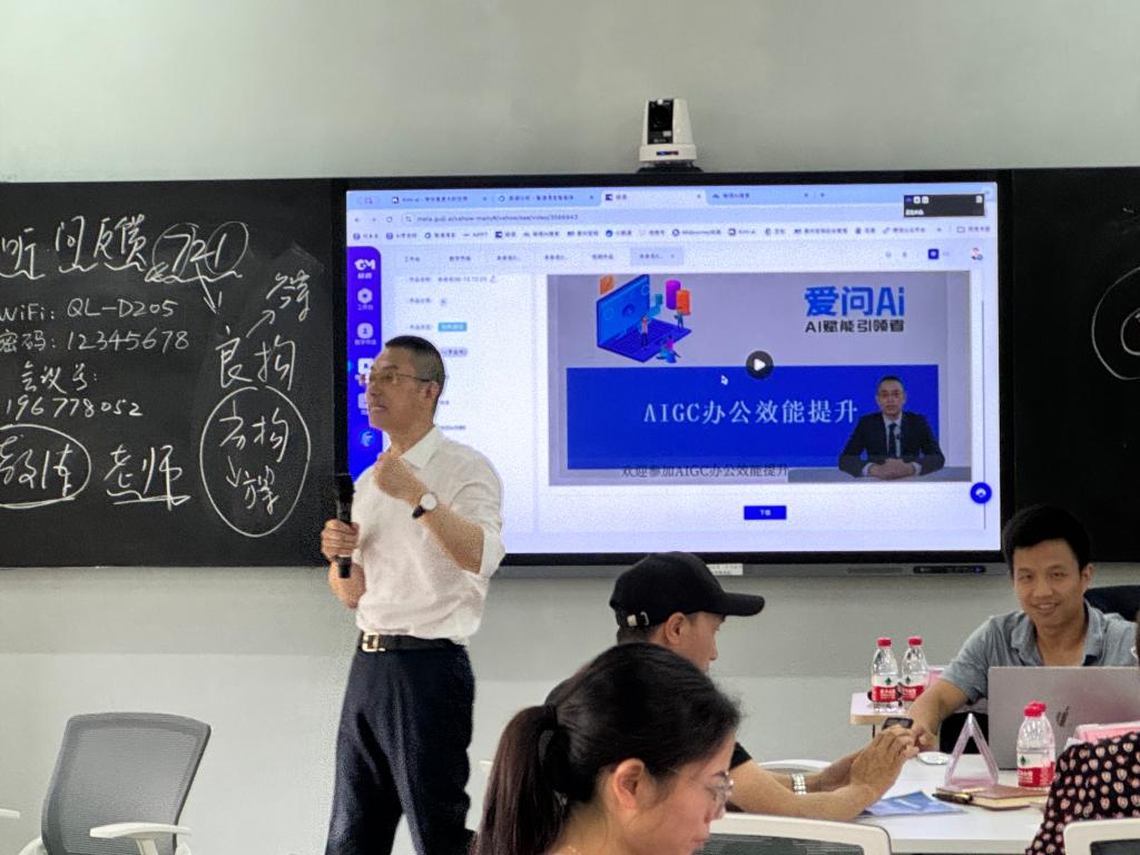 培训过程中,季益祥老师围绕“AI时代的认知”“AI基础技能实践”“AI如何赋能数字金融学院高质量发展”三个板块,通过丰富的案例和实践经验,深入浅出地介绍了AI技术在文案写作、PPT制作、智能决策、图片设计、视频制作、真人复刻和私域知识等方面的应用。