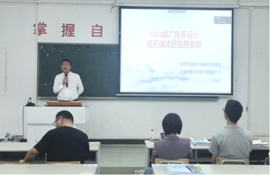 在评审会上,参与预答辩的同学态度认真,精神饱满,着装整齐,流利而清晰地阐述了各自方案的设计思路、创新点、物料展示、活动规划等。顺天镇领导和各位老师对同学们精神状态与务实作风予以了充分肯定,并对各自方案中所存在的问题有针对性地提出了修改意见。