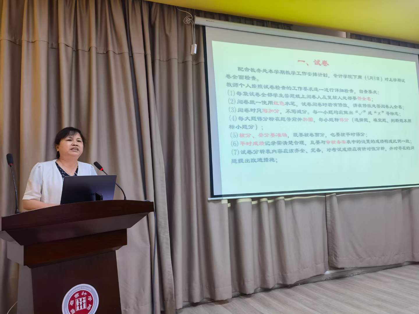 本次会计学院教育教学工作会议,为学院全体教职工指明了今后的工作方向,也为任课教师的教学工作提出了具体的要求。希望全体教师领会会议精神,贯彻落实会议内容,团结一心,奋斗创新,确保各项任务圆满完成。