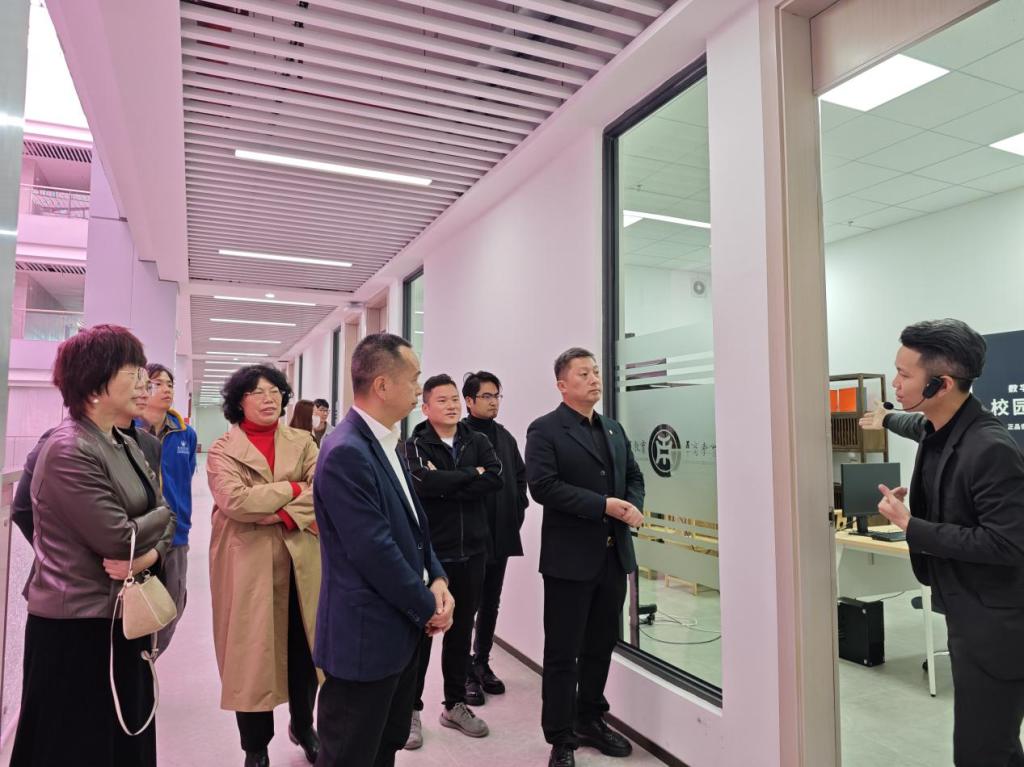 广东省农业农村厅乡村产业发展处处长、一级调研员郑志雄,四级调研员毛蕊及广东省乡村休闲产业协会执行会长、广州山水比德设计股份有限公司秦鹏总裁,协会秘书长晏曾节等领导嘉宾首先参观了我校产学研实训基地“桃花岛”直播基地和动漫游戏产业基地。了解了williamhill中国官网在深化产教融合改革发展、促进校企合作方面取得的阶段性成果的同时,结合华商的特色探讨了末来广东省乡村休闲产业学院如何依托学校实训平台服务好广东省乡村休闲产品、品牌。