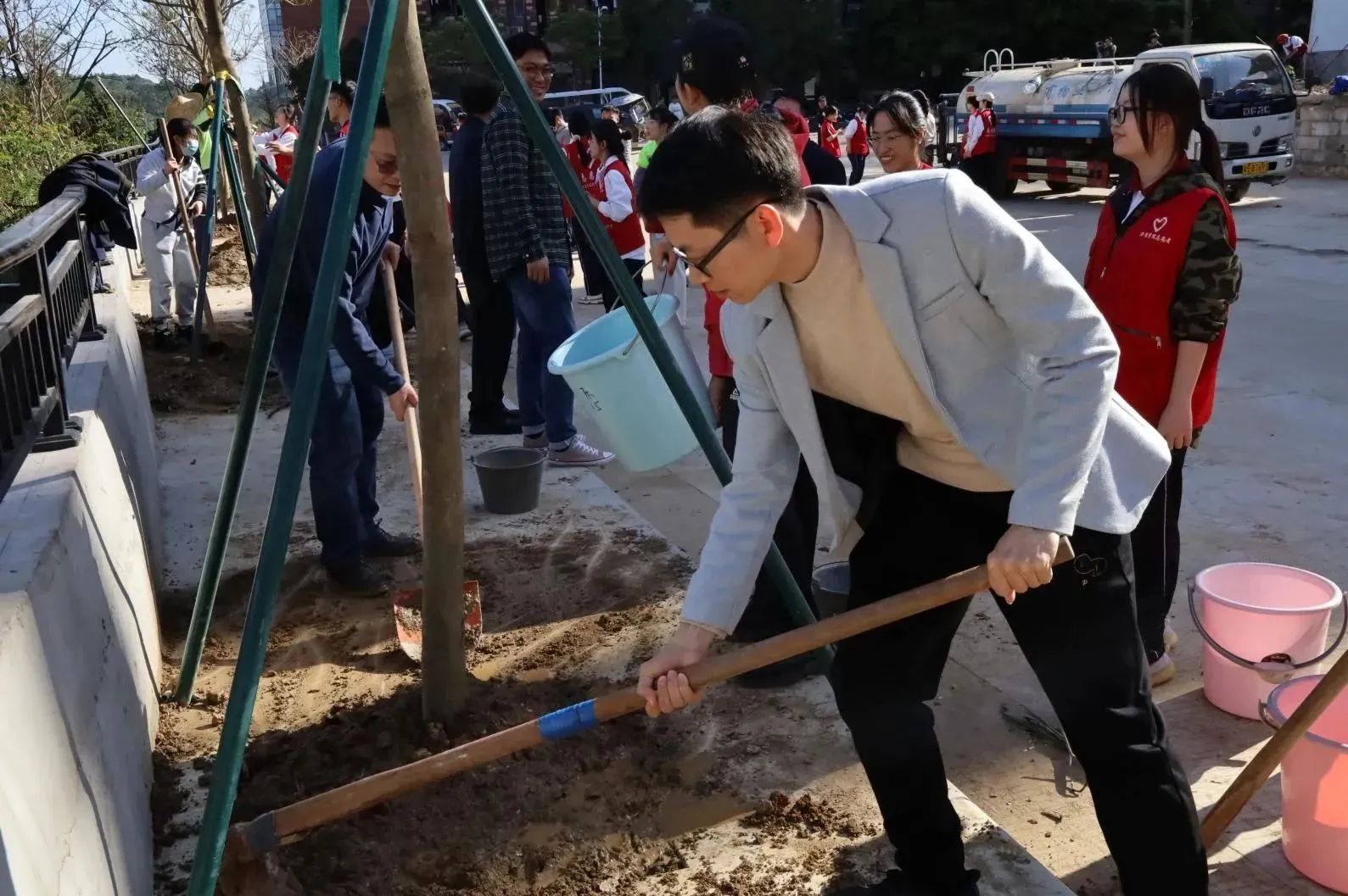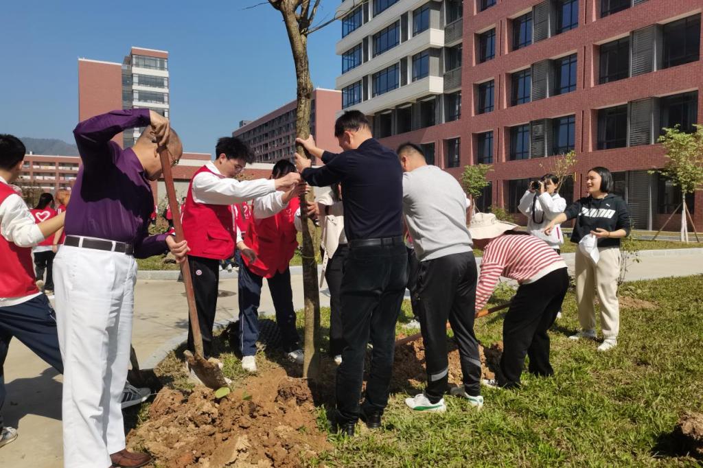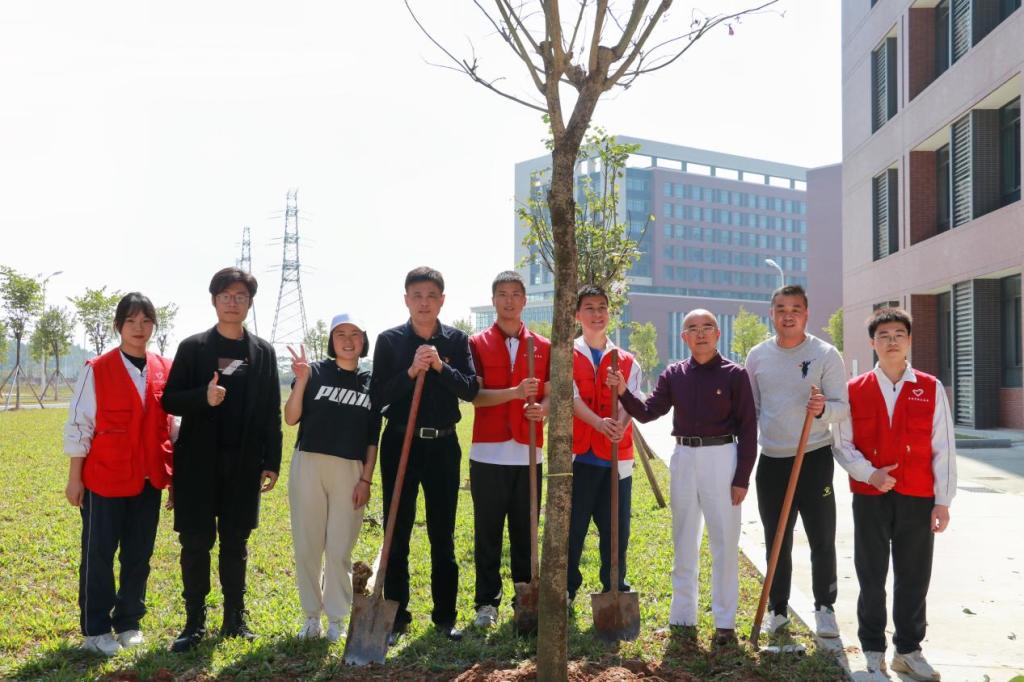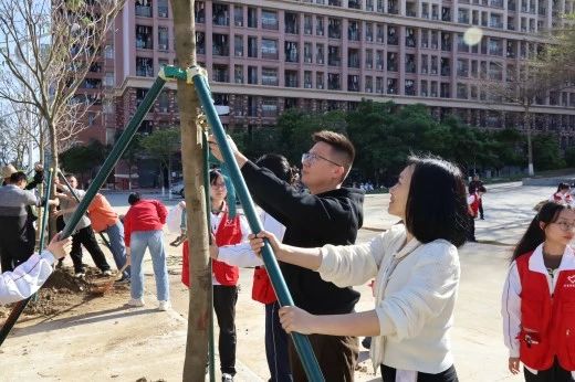 启动仪式后,各院校分别开展植树节活动。为引领华商青年在实践中践行绿色发展理念,助力绿美广东生态建设,williamhill中国官网“绿美广东 青年先行”植树护绿活动在双校区同步进行。学校党委书记陈玉欢、副校长王卫平、校长助理黄伟新、肇庆校区党委书记苏宁、学校党委委员、各二级学院党团组织负责人、学工主任、学生会指导老师与志愿者、绿化工人一道,为华商校园再添新绿。