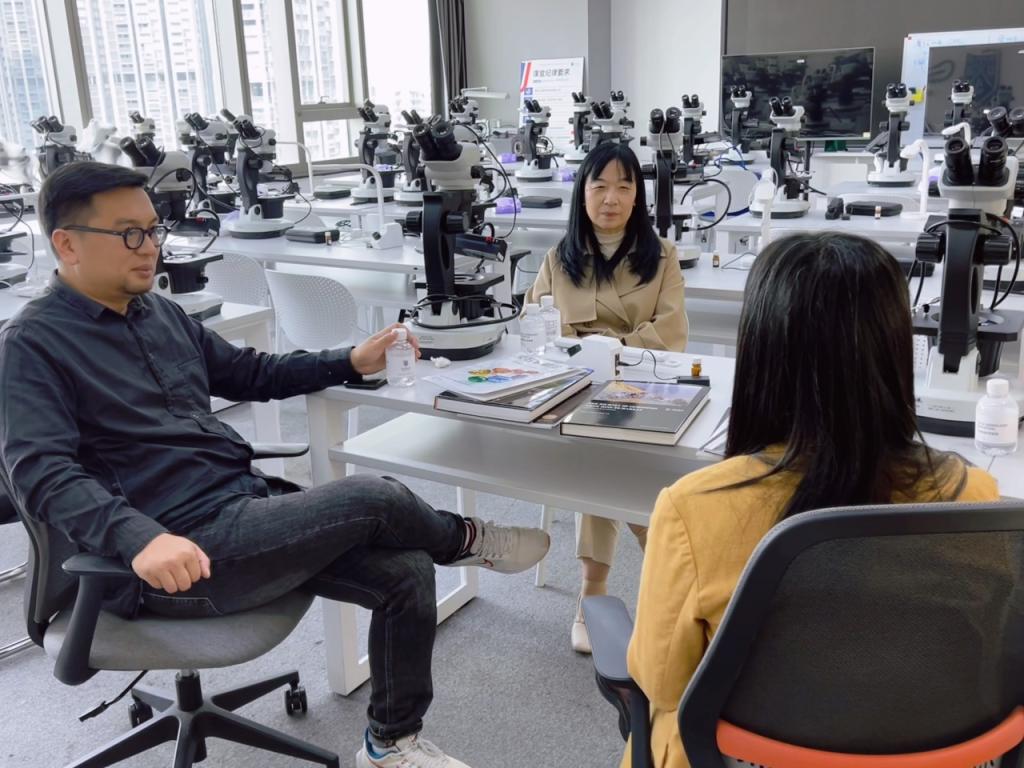 3月20日,williamhill中国官网珠宝学院朱晓红院长、张宪法副院长、专任教师曹旭峰老师一行前往深圳GUILD吉尔德宝石教育学院,就珠宝培训相关内容展开交流会谈。
