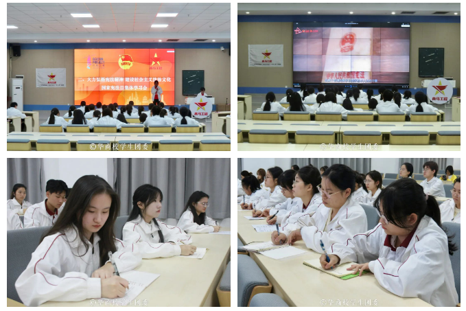 ——青马班集体学习会。校团委组织第十二期青马班学员在广州校区励志楼C408、肇庆校区8号楼108开展宪法专题分享会。学员们就我国宪法的基本精神和特征、设立国家宪法日的目的和意义、新时代如何坚定宪法自信弘扬宪法精神等内容进行分享和交流,在学习中深刻领悟习近平法治思想,维护宪法权威,增强法治观念,凝聚起奋进新征程的强大法治力量。