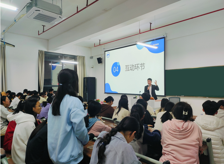 在互动环节,有同学提出了“大学生如何根据商业知识开始创业”的问题,蓝老师耐心解答,勉励同学们努力学习,立足学科专业,将所学知识应用具体实践中。