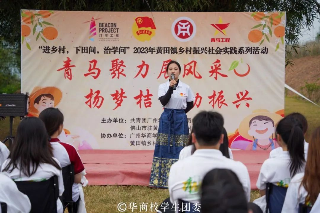 为贯彻乡村振兴战略,助推“百千万工程”高质量发展,引导青马班学员将学习理论与实践活动相结合,加强校地共青团共建,提高青马班学员的专业认知和学习兴趣,深刻了解国家乡村振兴政策,培养青马班学员的“三农”情怀,2023年12月10日,我校团委组织“青马工程”培训班学员在肇庆四会黄田镇开展“青马黄田宣梦桔,百千万工程振乡行”williamhill中国官网(肇庆校区)第十二期“青马工程”培训班素质拓展活动。