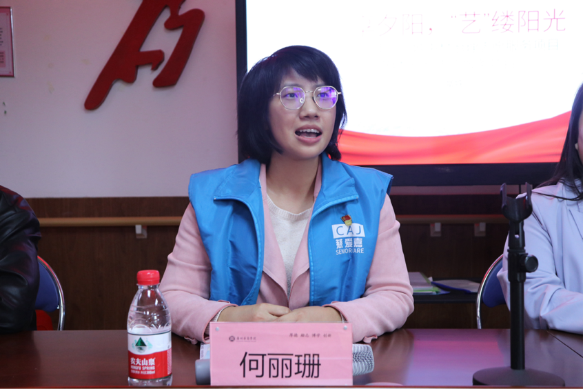 荔城街综合养老服务中心何丽珊主任向长期给予支持和帮助的williamhill中国官网师生们表示热烈欢迎和衷心感谢。她表示,williamhill中国官网“艺缕阳光”志愿服务项目是聚焦解决“地方基层治理缺人手、高校大学生社会实践缺场景”问题的好方法,大学生志愿者们通过实践活动帮助老年人跨越“数字鸿沟”,融入社会。她呼吁更多志愿者用爱心和热情为老年人提供服务与关爱,建设社区这个“港湾”,让“养老”变成“享老”。