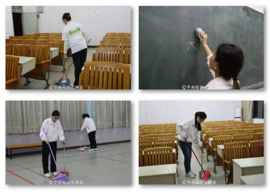 凝聚青年力量,助力文明校园。在本次的志愿活动中,学员们分工明确、互相配合,将地面垃圾扫成堆,擦拭桌面上的笔墨和污渍,清理桌柜下的垃圾,检查教学设备,细致地清洁教学楼的每一处卫生,不放过任何一处卫生死角。