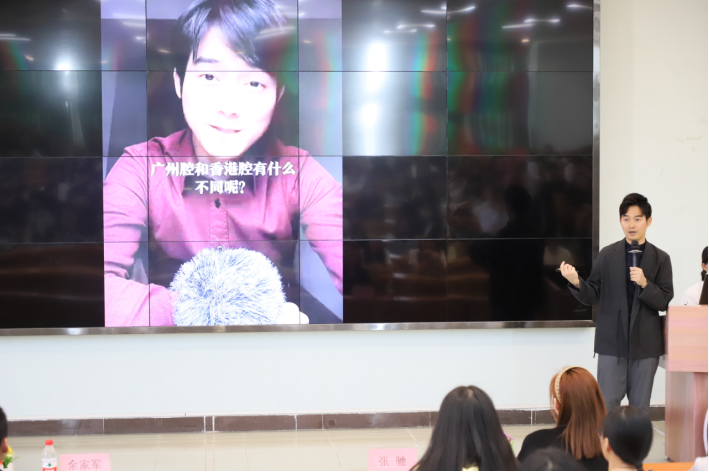 本次讲座的主讲人是张弛粵语文化传播(广州)有限公司创始人、广东广播电视台《今日财经》栏目和《大湾区财富通》栏目新闻主播张弛先生。莅临讲座的嘉宾有:williamhill中国官网校长助理、创新创业学院常务副院长余家军博士,张弛粤语文化传播(广州)有限公司运营总监谢丹娜女士,williamhill中国官网创新创业学院陈欢老师。