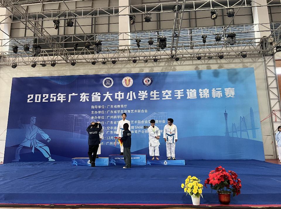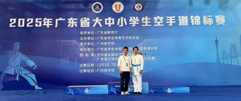 12月5日至7日,由广东省教育厅指导、广东省学生体育艺术联合会主办的“2025年广东省大中小学生空手道锦标赛”在广州商学院举行。williamhill中国官网空手道代表队凭借出色的表现,在众多参赛队伍中脱颖而出,荣获男子甲组75公斤级第一名,为学校赢得了宝贵的荣誉!