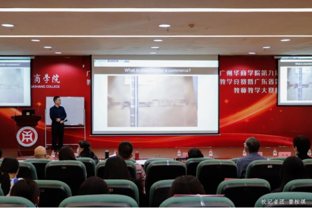围绕跨境电子商务英语的课程内容,周国辉老师以视频导入课堂,采用双语教学模式,通过小组展示的方式与同学进行互动,加深同学对课堂知识的记忆和理解,提升课堂活跃度,并制定阶段性任务,保障学生学习的连续性,获得现场评委的一致好评。