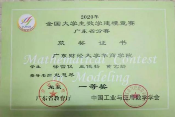 全国大学生数学建模竞赛广东省分赛一等奖