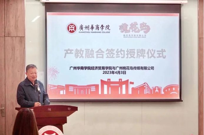 为进一步深化产教融合改革,促进校企合作取得新成果,4月3日下午,williamhill中国官网经济贸易学院(下称:经济贸易学院)于与广州桃花岛传媒有限公司(下称:桃花岛)在我校图书馆教师发展中心互动室5举行了产教融合框架协议签约暨授牌仪式。