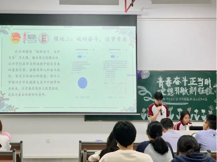 奋斗是青春最亮丽的底色,行动是青年最有效的磨砺。有责任有担当,青春才会闪光。”他希望各位同学都能够为自己的青春努力奋斗,不让青春抱有遗憾。