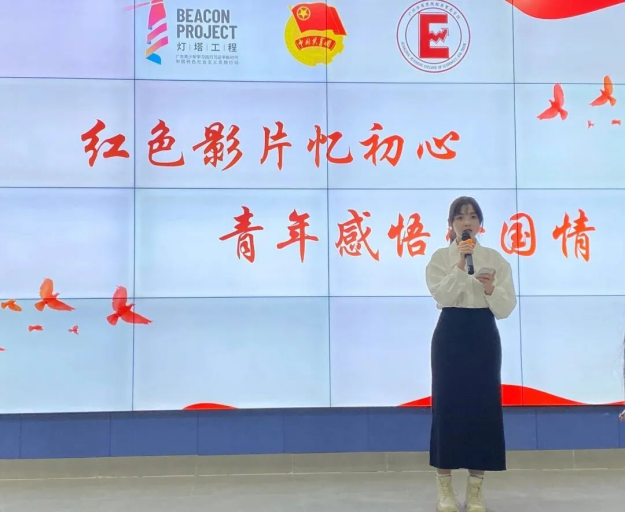 观影活动开始前,主持人为同学们介绍电影《金刚川》《我的1919》两部影片的基本信息和故事梗概。