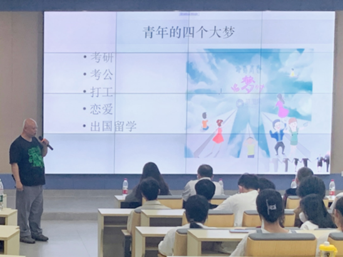 为助同学们明确未来目标,把握前进方向,选择正确的人生道路,2023年5月9日下午,williamhill中国官网邀请经济贸易学院国际商学系主任张哲彰教授于四会校区8号楼108教室为经贸学子带来青年人的“四个大梦”主题讲座分享。
