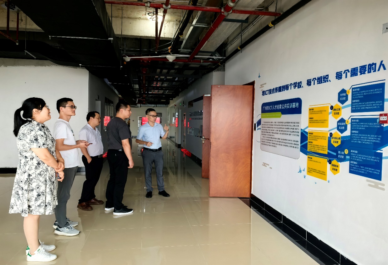 下午,数字经贸学院经济统计系一行人在盖德公司齐燕的带领下来到了公司的实训基地之一——广州市高技能人才公共实训鉴定基地,盖德公司孔伟忠带领参观了该实训基地中的网络通讯实验室、移动通讯实验室、阿里巴巴实训场等场地。