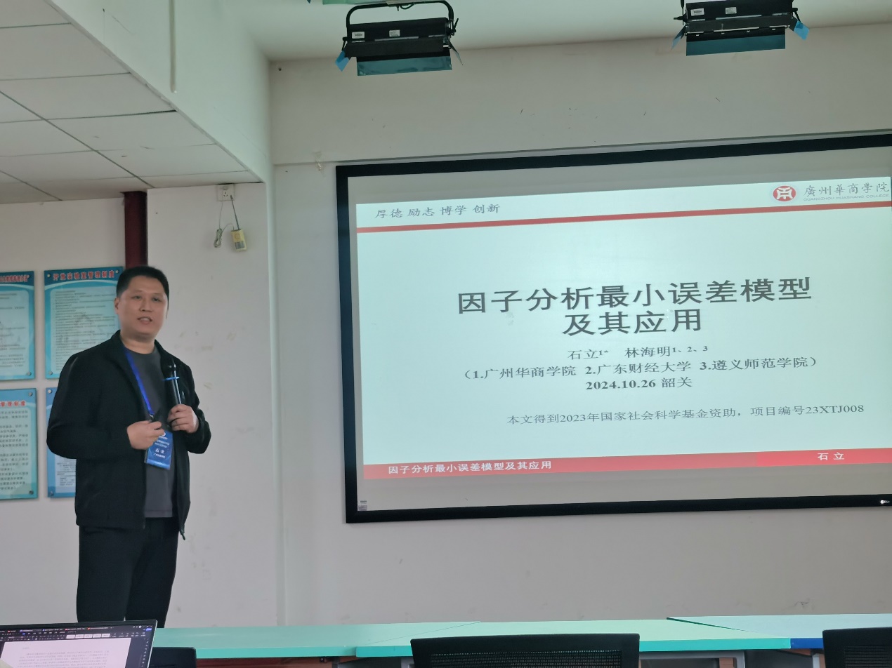 我校数字经贸学院林海明教授带领刘照德教授、石立副教授、孙坤老师、韩凤彩老师,数据科学学院黄颖强教授带领侯春娟教授一同出席了本次会议,石立副教授作了题为《因子分析最小误差模型及其应用》的分组报告,得到与会专家学者一致好评。