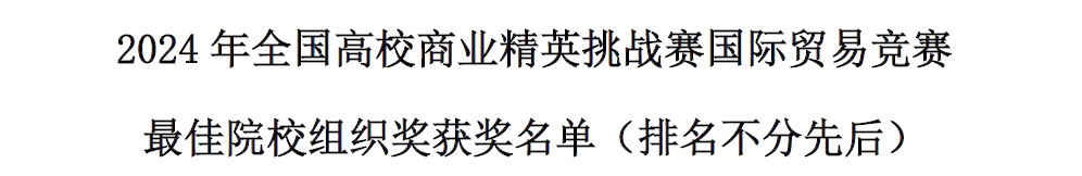 全国高校商业精英挑战赛国际贸易竞赛是由中国国际贸易促进委员会商业行业委员会牵头主办的国家级学科竞赛活动。根据中国高等教育学会发布的《全国普通高校大学生竞赛排行榜》,全国高校商业精英挑战赛国际贸易赛项连续多年被纳入全国普通高校大学生竞赛排行榜目录,也是我国国际经贸教育领域校企合作的规模最大的综合实践平台和学科竞赛活动。