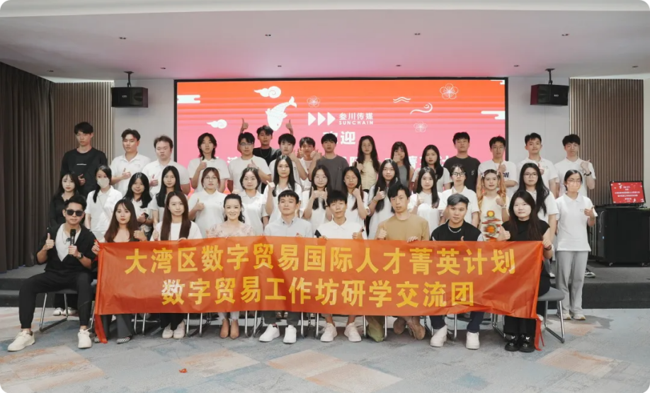 9.5月29日,由广州桃花岛电商咨询有限公司行业导师,带领大湾区数字贸易工作坊研学交流团前往叁川传媒进行研学。