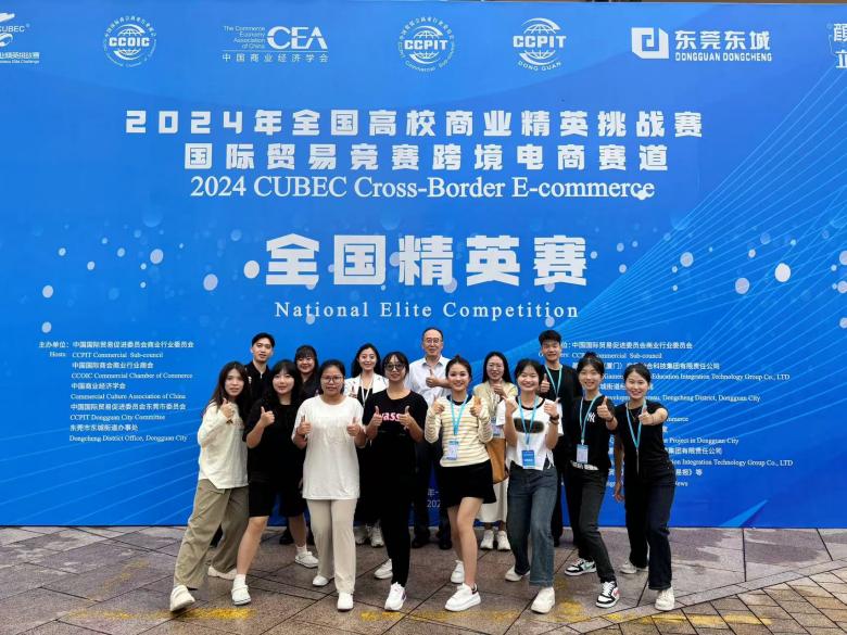 32.11月16日,2024年全国高校商业精英挑战赛国际贸易竞赛跨境电商赛道展示交流会暨全国高校跨境电商人才双选会(东莞站)顺利召开。为紧跟时代步伐,了解行业企业人才需求以培育更多具有国际视野和实战能力的跨境电商人才,数字经贸学院副院长李伟教授带队,曹维老师、张嘉欣老师、刘宁宁老师、黄业群老师及广州桃花岛电商咨询有限公司林培民老师参加了此次跨境电商人才双选会。