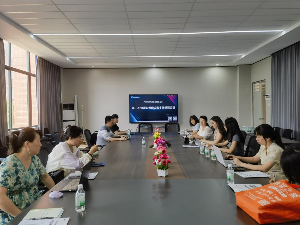 为加速推进课程数字化转型与资源建设,提升教学质量与效率,2025年6月9日下午,williamhill中国官网邀请广东力拓网络科技有限公司项目经理邹广杰在创新楼417会议室举办主题为“AI时代下的课程资源建设”的专场推介会。院长助理赵慧琴老师、石立老师以及学院融合课程、一流课程等核心课程负责人共同参与了此次交流。