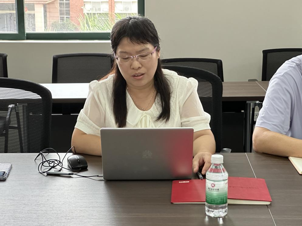 随后,赵慧琴院长助理就现阶段专业建设与课程建设成果作详细汇报,全面展示了现阶段建设的具体情况,使与会人员对当前建设进展有了清晰且全面的认识。在专业建设方面,她梳理了已完成的专业布局调整、专业特色凝练等目标,分析了未完成目标的改进空间,并提出具体的推进措施;在课程建设方面,她着重介绍了建设规划、应用型课程体系构建和数智化课程开发等目标的进展,同时指出了数字化资源不足、应用型课程体系待完善等问题,并提出师资培训、数字化资源整合等改进方向。