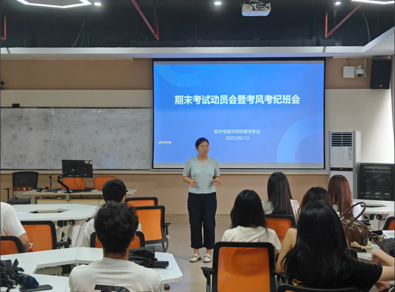 6月16日,数字金融学院在肇庆校区召开主题班会。会议由数字金融学院团委副书记赵颖祯老师主持。赵老师以“考风即学风,考纪即品德”为切入点,通过案例学习、警示教育,重点强调证件核查、违规处理等细节要求。她特别提醒,考试不仅是知识的较量,更是品格的考验,每一份答卷都应写满真诚。