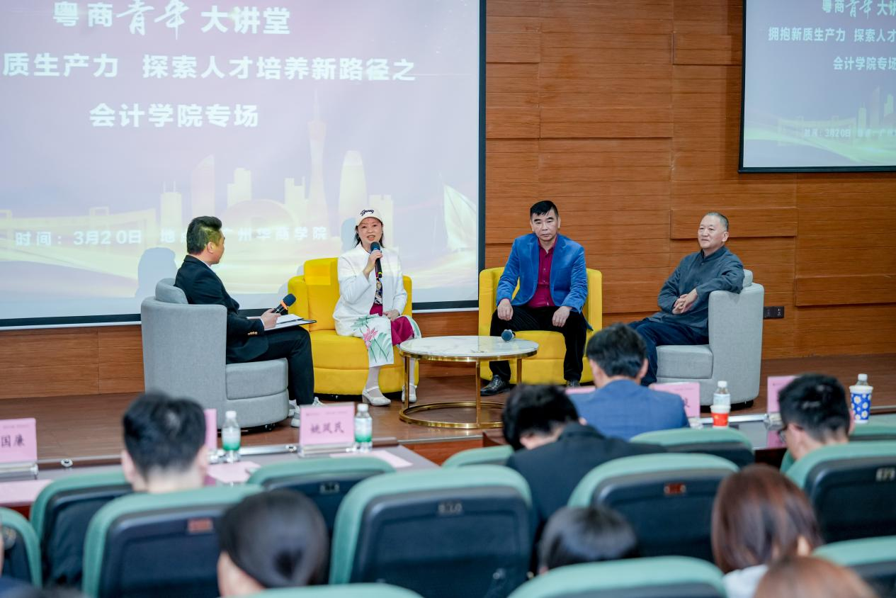 在圆桌论坛环节,三位嘉宾围绕“新质生产力与青年机遇”展开跨界对话。温兆安先生呼吁青年“以哲学思维突破行业边界”;许桂萍女士强调“AI时代需保持终身学习与跨界整合能力”;李文良先生建议同学们“从传统文化中汲取创新灵感”。