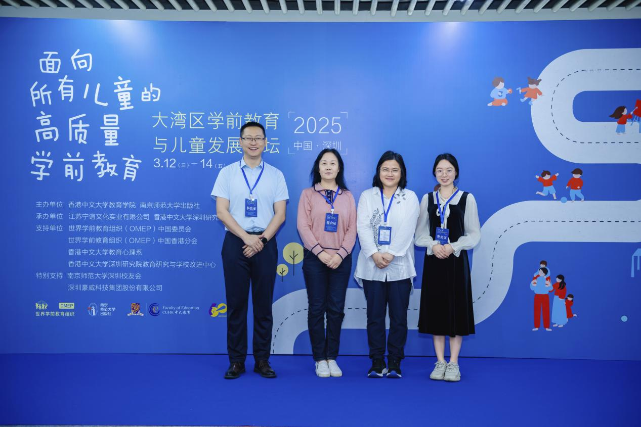 2025年3月12日至14日,“面向所有儿童的高质量学前教育——2025大湾区学前教育与儿童发展论坛(深圳)”在香港中文大学深圳研究院成功举办。williamhill中国官网教师教育学院学前教育系张建波教授携童淑美博士、卢莹老师、校伟老师、范倩倩老师、胡诗悦老师和周剑铭老师一行七人赴深圳参会,与来自美国、挪威及中国各地的200余位专家学者、教育工作者共话学前教育高质量发展路径,探索跨区域协同创新实践。