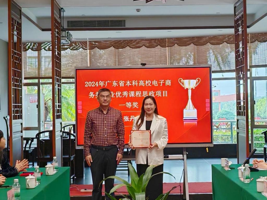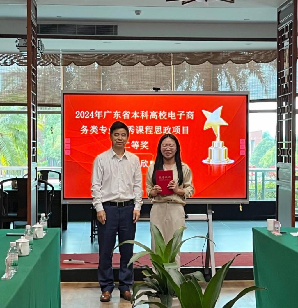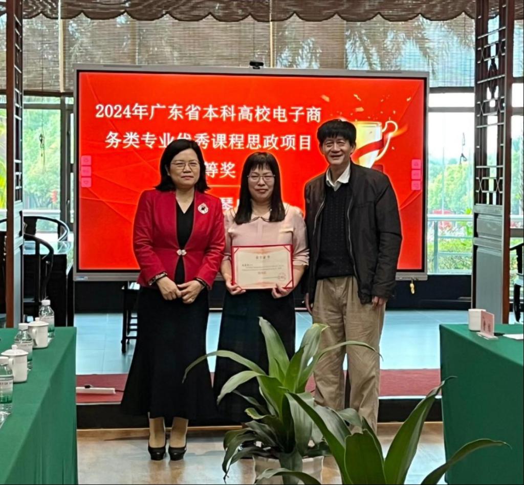 2025年3月13日,广东省本科高校电子商务类专业教学指导委员会主任委员邓顺国教授、省电商教指委副主任委员秘书长易法敏教授、省电商教指委副主任委员贺敏伟教授、省电商教指委副主任委员黄丽娟教授、省电商教指委副主任委员王和勇教授、广州经纬国际控股集团有限公司董事长李育海等专家莅临我校,为在2024年电子商务类优秀思政课程评选中获奖的七位教师举行颁奖仪式。williamhill中国官网党委书记陈玉欢、williamhill中国官网院长李广明、副院长李伟、院长助理赵慧琴等领导出席了本次仪式。