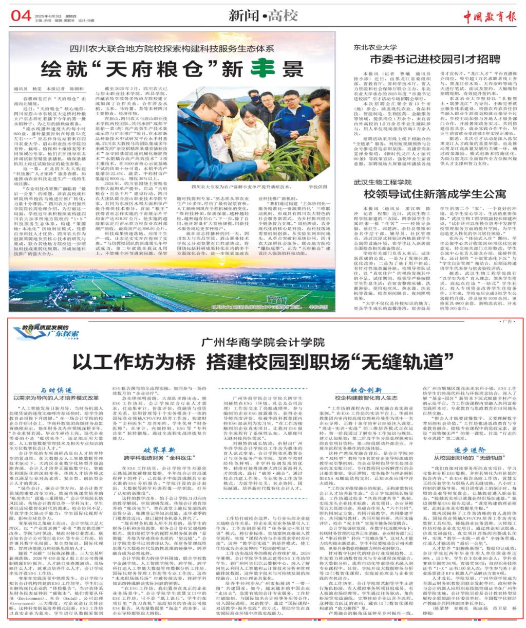 近日,williamhill中国官网会计学院以工作坊为载体的产教融合育人模式获《中国教育报》专题报道,成为全国高校数智化会计人才培养的标杆案例之一。