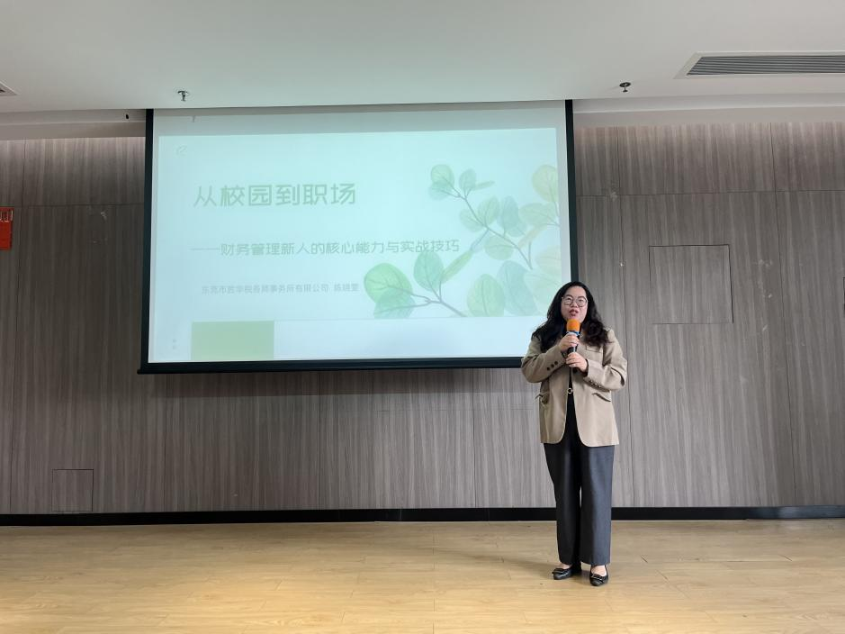 胜华税务师事务所总经理陈晓雯带来“从校园到职场——财务管理新人的核心能力与实战技巧”主题讲座,强调初级会计职称考证、专业课绩点提升的重要性,并呼吁学生提前规划职业路径,为职场竞争夯实基础。
