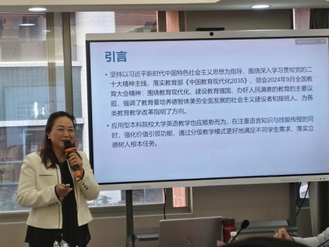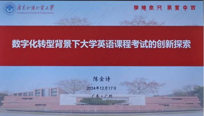 广东省大学英语课程教学指导委员会秘书长、广东外语外贸大学教学部部长陈金诗教授指出,背景与使命是大学英语教学改革的核心动力。他认为,在全球化与信息化背景下,英语的重要性日益凸显,大学英语教学必须紧跟时代的步伐。他详细向与会代表介绍了广东外语外贸大学在这一领域所开展的有益探索和成功实践经验——适应新时代要求的英语教学模式,利用大数据和人工智能技术进行教学内容和方法的创新。陈金诗教授认为,在新的时代背景下,每一位大学外语教师都应该不断更新知识和掌握新技术,以更好地适应教育变革。