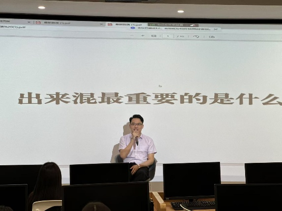 最后,20级优秀毕业生、创业达人刘鹤彪校友分享了他的创业故事。作为耘梦教育有限公司和广州荔下商贸有限责任公司的创始人,他以在校积极参加创业比赛的经历激励同学们勇敢脱离舒适圈,积极探索和实践,通过校园创业活动锻炼自己的创意和商业思维。