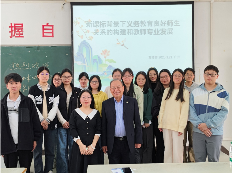 2025年3月21日,教师教育学院在励志楼A202成功举办“新课标背景下义务教育良好师生关系的构建和教师专业发展”主题讲座。活动特邀上海外国语大学博士、广东省外语艺术职业学院教授黄林林担任主讲嘉宾,学院师生代表积极到场聆听,共同探讨新时代教育理念与实践路径。