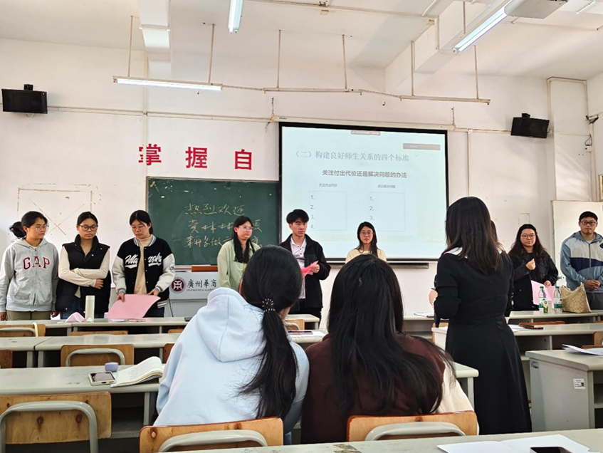 随后,针对良好师生关系的构建,黄林林教授从“理念与方法”“四个标准”两个方面进行阐述。她认为,教师需摒弃权威化思维,尊重学生个体差异,关注其情感需求,营造平等对话的课堂氛围。在此基础上,黄教授结合师生互动实例,阐释了构建良好师生关系的四大标准——相互尊重、相互信任、相互理解与相互支持。她强调,教师只有达到这四个标准,才能真正建立起良好的师生关系,实现师生关系的正向循环,最终促进学生全面发展。