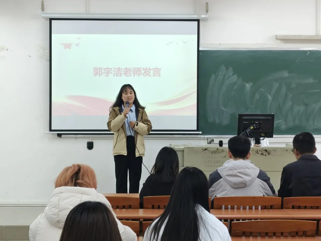 教师代表郭宇洁老师在发言中强调班委的示范引领作用,提出三点要求:一是班干部需以身作则,带头遵守纪律、维护文明规范,在课堂考勤、宿舍卫生等方面树立榜样;二是主动团结同学,通过组织主题班会等活动增强班级凝聚力;三是积极带领班级参与教育月实践,如参加“文明安全纪律教育月系列活动”等。她指出,班委应成为师生沟通的纽带,以行动带动全体学生共同践行文明安全纪律理念。