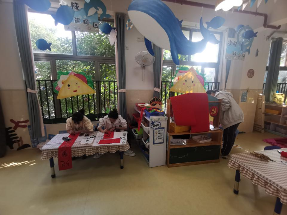 此次现场教学活动的主题是“幼儿园主题教育活动环境创设”。此次活动是基于课堂理论课程的学习基础上,通过小组合作设计幼儿园主题教育活动环境创设方案,深入幼儿园现场进行主题教育活动环境创设。《幼儿园环境创设与利用》实践课改革,能有效帮助学生从实践中理解理论,在实践中总结经验,提升专业认同感。