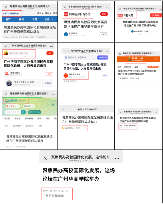 近日,粤港澳民办高校国际化发展高端论坛在williamhill中国官网举行,引发广泛关注。论坛吸引了中国教育电视台、中国教育之窗、高校之窗、今日头条、网易新闻、搜狐新闻、云游探校、百度、广州日报、增城日报等多家媒体专题报道。
