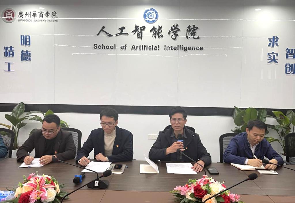 会议初始,人工智能学院党委书记杨波领学黄坤明同志在广东省高质量发展大会上的讲话,围绕党建引领学院发展,深化党建理论学习,将党建贯穿各项工作。他指出,要以党建为统领,激励教师党员带头攻坚技术短板、做好毕业生就业和人才引进工作,同时他明确要求全体教师党员发挥先锋模范作用,整治工作作风,强化责任担当,以务实姿态推动党建工作和业务工作各项部署落地见效,切实把党的组织优势转化为学院发展优势。