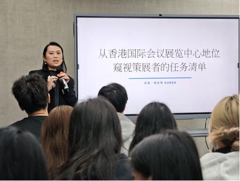 此外,Kenny老师还详细阐述了香港作为国际会展之都的独特优势,包括地理位置优越、基础建设完善、营商环境优越等。同时,他也指出了当前香港展览业面临的机遇与挑战,如展览场地不足、人手短缺等,为同学们提供了宝贵的行业洞察。